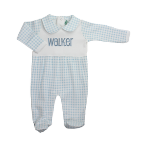 Boys Personalized Blue Gingham Pajama Footie